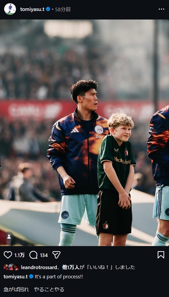 ◆日本代表◆アヤックスDF冨安健洋がインスタ更新!「急がば回れ」🤔