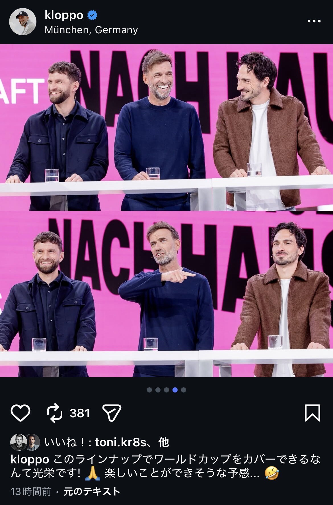 ◆W杯◆クロップ・フンメルス・ミュラー…W杯独の解説陣が豪華すぎると話題に!