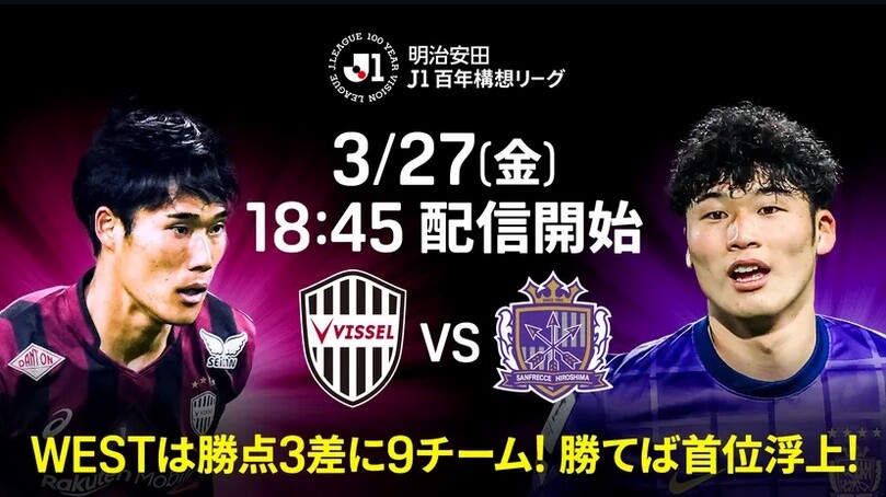 ◆J1西◆5節 延期分 神戸×広島 HT 互いにチャンス少なくスコアレスで後半へ