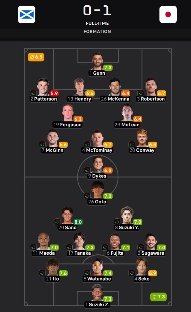 ◆親善試合◆スコットランド×日本 スタメン発表!日本は若手お試しモード!1TOP後藤、シャドーに佐野航大と鈴木唯人!ボランチに藤田と田中碧