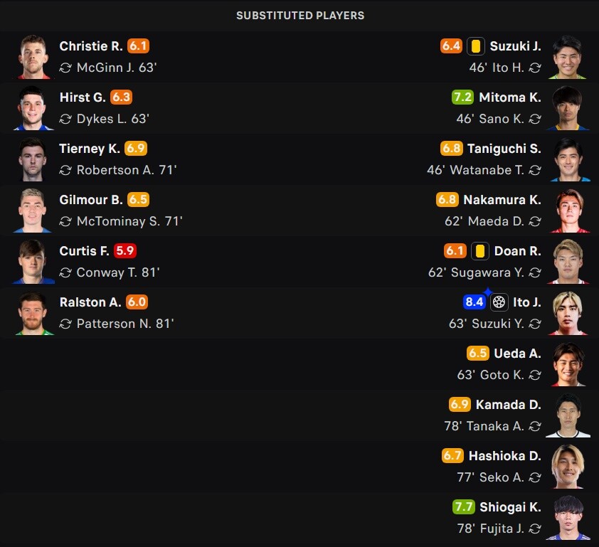 ◆悲報◆日本代表MF堂安律スコットランド戦チーム最低点の6.1