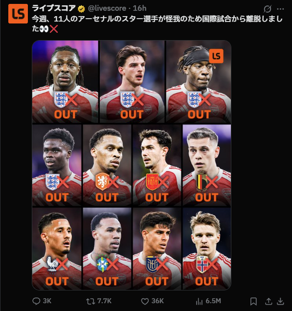 ◆悲報◆イングランド代表、日本戦を前にライス・サカ・マデュエケのアーセナル勢など8人離脱