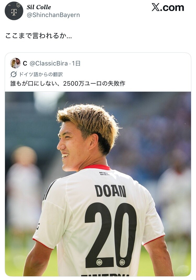 ◆悲報◆フランクフルトMF堂安律、失敗補強を言われ始める「€25mのFLOP」