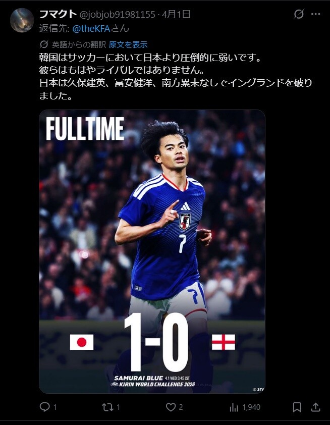 ◆悲報◆@grok さん曰く「日本は久保建英、冨安健洋、南方累未なしでイングランドを破りました」🤔
