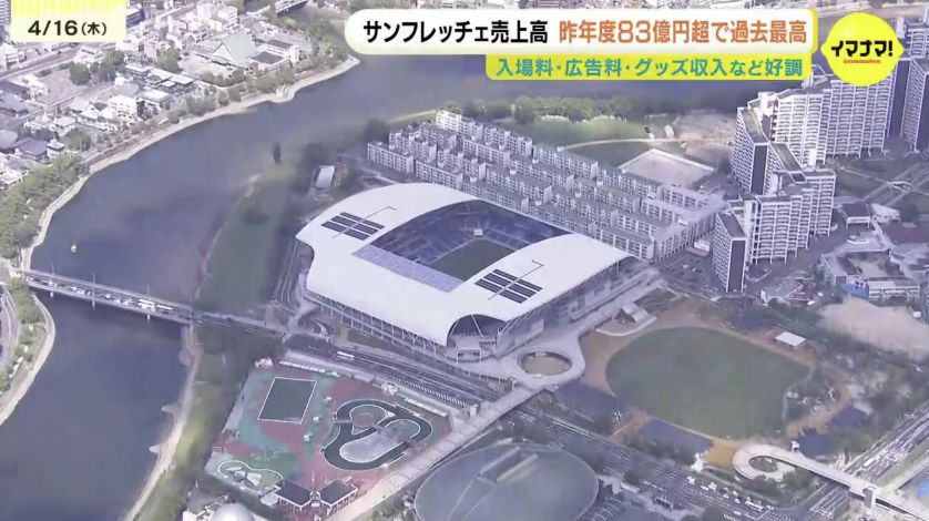 サンフレッチェ広島が売上高83億円、純利益4億1300万円で2期連続黒字を達成し、クラブ史上最高の総入場者数を記録した。新スタジアム「ピースウイング広島」への移転効果が大きく、都市中心部の立地が観客動員増に寄与したとみられる。