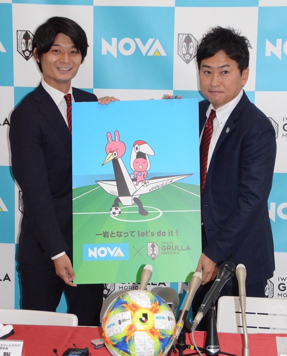 24日にJリーグの理事会において承認されていた。会見には、株式会社いわてアスリートクラブの宮野聡代表取締役社長とNOVAホールディングス株式会社の稲吉正樹代表取締役社長が出席